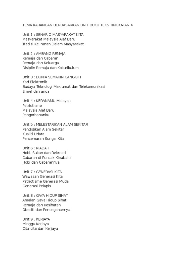 Tema Karangan Berdasarkan Unit Buku Teks Tingkatan 4 Dan 5 Pdf